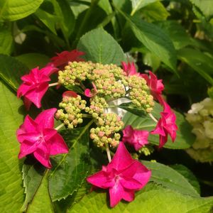 おはようございます😊(*^^*) 雨が上がって 日差しが見えています☀️☀️☀️ アジサイレッツダンス 綺麗に咲いています🌸🌸🌸🌸🌺🌺🌺🌺🌺 我が家のレッツダンスは ピンク色濃いローズ🎀💕💓💗 色です❤️ 土壌に寄って色が変わる様で この色お気に入り(*´◒`*)°❀⋆.ೃ࿔*:・๋࣭ ⭑❀❀˖°₊˚✿𑁍.ೃ࿔*:・