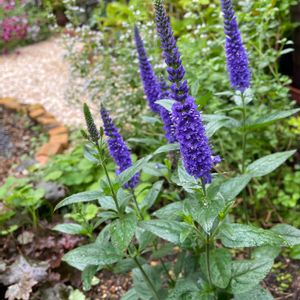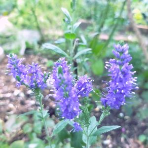 今朝の庭より 小さめで2番花が咲きました 宿根ベロニカマリエッタ 💜💙
