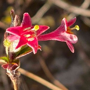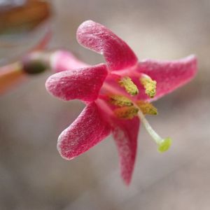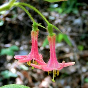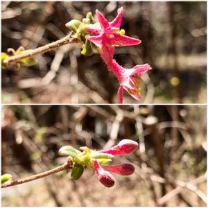 星形のかわいいお花🌟 2つずつ咲くのが普通なのだけど 今年は3つ子のつぼみがいくつもある‼️ ということは、それだけ実もできる?😁 ✨✨✨ 【ミヤマウグイスカグラ(深山鶯神楽)】 Lonicera gracilipes glandulosa スイカズラ科スイカズラ属の落葉低木 花期 4〜5月 果期 6〜7月