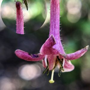 皆さんご存知のウグイスカグラです。 よくある普通のは毛はないんですが、これは花冠外側に毛が散生してると共に、先端に赤いポッチがついてる腺毛(液体を出す腺)も混じってるのが見られます、子房にもビッシリ😆 これは、ミヤマウグイスカグラですね。 毛はあっても腺毛はなく、子房にはふつう毛がないのは、ヤマウグイスカグラといいます。