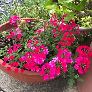 バーベナ 花言葉 sensibility(感受性) 鉢上げして部屋に入れた途端に お花が咲き始めました❣️😄♫ 暖かい場所が良かったみたい❣️😁👌