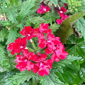 おはようございます😊 🏷真っ赤な火曜日 に参加させていただきます 雨上がりの赤いバーベナ 花❤️言葉も素敵ですよね 「団結」 花の輪は人の和 平和を願います 2022.02.13 浦添市内 買い物帰りの道端にて