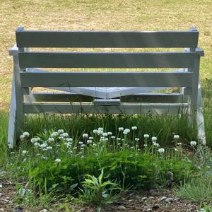おはようございます☺️ ベンチの後ろに白詰草 今日のお花