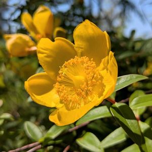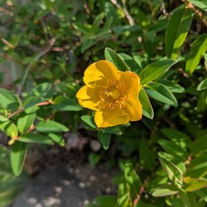 タイリンキンシバイかな? 葉が平面上に並ばず、十字対生状に節ごとに角度がややずれてつくことや、花の径が約6 cmと大きいことからキンシバイと区別される…Wikipediaより 葉はよく見なかったが 花は確かに大きかった💛 花の一部が欠けたようになっているからタイリンキンシバイとむらたぬきさんがおっしゃってました❗️