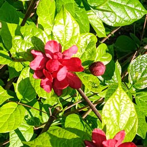 🌼クロバナロウバイ アフロディーテ 〈ロウバイ科, クロバナアフロディーテ属〉 ベルベット調の花びらに光沢のある葉も魅力的に、初めての出会いのお花さんです😻 今年の都市農業公園には、チューリップ🌷畑が河川敷に出来てると楽しみにして出掛けましたが… 残念ながら、半分は咲き終えていましたね~😅😆 又、秋のお花に期待します♪