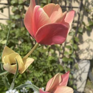 娘と一緒に秋に植えた 普通のチューリップも咲きました。 花びらの薄いフロックスも雨の当たらない軒下だと長持ちしてる気がします😊