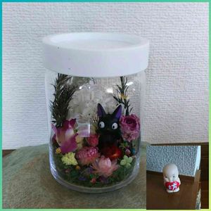 トトロのリース~🐾 トトロを持ってきて 『これで何か作ってほしい』と リクエストが……😊 ジジのボトルアレンジ作ってからこういうリクエストが増えた🎵 自分ではあまりフィギュアとか使ったことないけど これはこれで可愛いかも✨