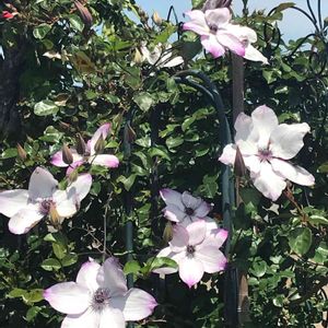 クレマチス フォンドメモリー とにかく花がデカい。20cmほどの花が風にひらひらと揺れています。