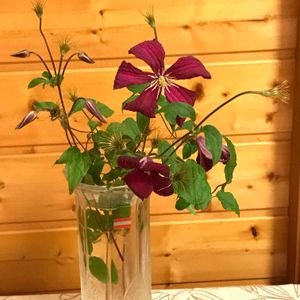 クレマチス マダム ジュリア コレボン 昨日剪定を済ませて、花が残っていたので飾りました。 剪定した枝は初めて挿し木してみました。 上手くいくのかなぁ😅