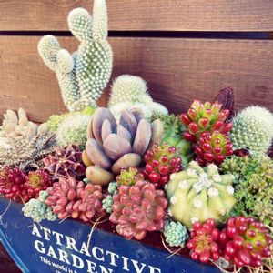 多肉とサボテンの寄せ植え、成長して紅葉して少し華やかになりました😊💕