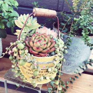 puchi.pochiさんのリメ鉢に葉ざしの姫たちを😊