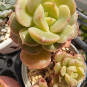 ぷくぷくピンク😍✨💕 🍓チョコパフェっぽく作った鉢にいるので…なんだかおいしそう🤤 今日は娘ちゃんが大会にいっています。今年は無観客なので応援に行けず💧ソワソワ落ち着かないので多肉をいじって気を紛らわしてます…