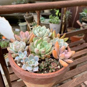 5年前からいる月美人の茎の部分がだいぶ伸びてきたので2週間前に思い切ってカットして仕立て直した。この鉢のだけ独り立ちにして残りはどんぶりに。 根がない状態で植えたので根が出たかどうかわからないけど,元気そうになったのと色がピンクに変わってきたので今日から水やりを再開。