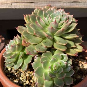 ぷくぷくになった エケベリア・ヒアリナさん😻💗🤍💛 シュークリーム魅たいで美味しそう😸🍴