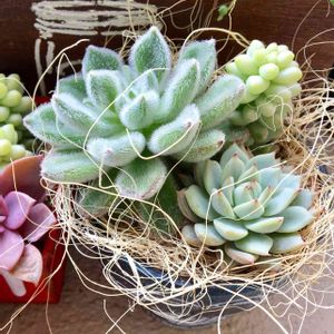 はじめてココヤシファイバーを使って 寄せ植えしてみました(*^^*) 少ない多肉でも寂しく見えない! いい感じかも(о´∀`о) 最近モケモケさんがほしくて ドリステイラーをポチリ💨 渚の夢がステキだけど高くて… なかなか手が出ないです💦