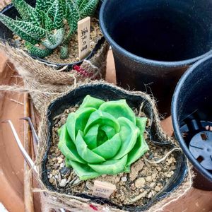 可愛い子が届いた! ミカエリビジンだぁ 傷一つない きれいな苗です 後ろは マンテンノホシ アロエとガステリアの ハイブリッド種なんですね とっても嬉しぃ これから 黒のプラ鉢に植えます お里はvistaさんです @vistajapan