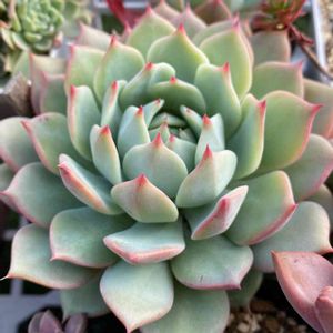 ちょっと前に強風で物干し竿からハンギング鉢が落ちて砂まみれになったセンペル達🤣 砂を取り切れてないのは見ないフリしてください💦 夏場は何故かすっかり緑一色になってたティヒも模様が戻ってきました🌿 緑のセンペルが欲しくて狩ったデュークオブウィンザーは結構増えてくれました💕 一番奥のアトロプルプレウムはおまけで頂いた子ですが美しく紅葉する子でお気に入り❤️