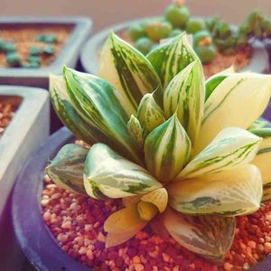 ハオルチア 雪の華 プクプクしてて可愛い子。 子株ちゃん外してあげた方が良いんだろうな(^-^; 春まで同居予定