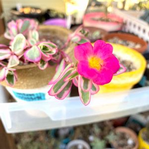 おはようございます🙋♀️ 梅雨の晴れ間です🎶 26度 💓ポーチュラカマジカルキューティー💓 トワちゃ〜ん📣 こんなお花だよ👌 右の鉢は 紅ミセバヤ やっと芽が伸びてきました😅 冬には真っ赤に紅葉しま〜す🍁 熱中症🥵に注意だよ〜⚠️⚠️⚠️