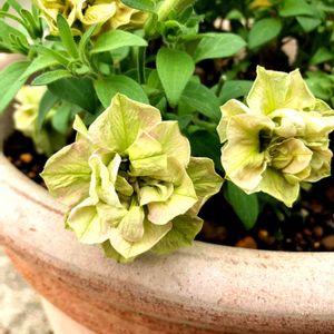 ペチュニア まっちゃラテ 他のペチュニアに比べてあまり花持ちが良くないけど、こんもり咲いてくれてます♡