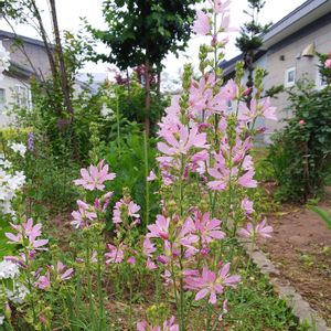 数年前に植えたシダルセア ロザリー。少しずつ増えて、この夏は「私はここよー」と存在を主張するようになりました😄