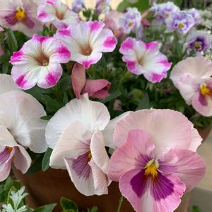 ペチュニア・ビバとティフォシー・アンティークシリーズNo.2 この二つを近くに置くと、引き立てあって可愛いな〜(⑅︎•ॢ◡︎•ॢ).。*♥︎ 寄せ植えは上手く出来ないから、寄せ鉢で😊