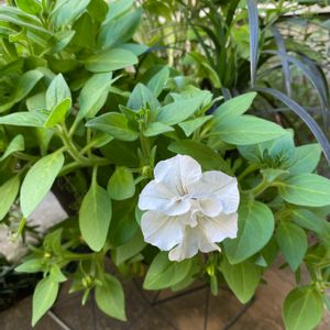 冬も常緑のまま寄せ植えの脇役でいてくれた、ペチュニアのビバがいつのまにか咲いていました😆 年末くらいまで咲いてたし強すぎる‼️