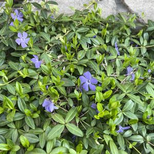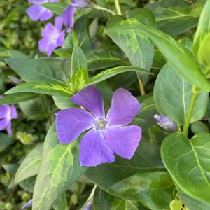 紫色のツルニチソウ 友人のお庭に咲いてびっくり‼️ 我が家のはまだはがで始めたばかり このお花も好きです🟣🟣🟣 葉の感じも好き🍃🍃🍃🍃🍃