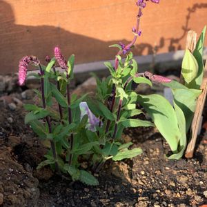 摘み取る前に•*¨*•.¸¸*:⚈້͡ ໋͈ ˌ̫̮ ⚈້͡ ໋͈ ❤ この前お迎えした サルビア薔薇の手前に定植しました。