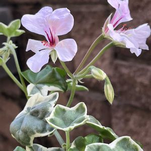 斑入りのアイビーゼラニウムにお花が咲きました💓 ピンクの可愛いお花です❣️