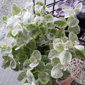 ヘリクリサム ペティオラレ バリエガータ🤍💚🤍 斑入りでもけもけの可愛い子です( * ॑꒳ ॑*)♡ ヘリクリサム ライムミニより葉は大きめです🌿 pic⑤アイビーゼラニウム エレガンテちゃん🩷 お花が沢山咲いて、楽しませてくれてます(๑´∀`๑)🎶 以前は白いお花だったけど、最近はピンクになってきました🩷 最近、チラホラ焦げ始めた我が家の多肉たち…💧 明日から暑さ酷そうで日差しも強くなるかなってことで、慌てて遮光ネット取り付けました💦