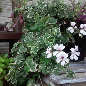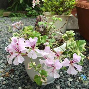 2年目の今年は花が沢山咲いています😊 葉っぱの縁が紫色になるのはいつの季節だったか…忘れちゃった。 アイビーゼラニウム エレガンテ