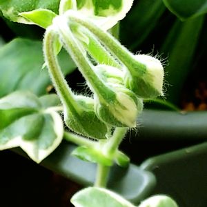 ピンクや白の斑入りの葉っぱが 綺麗なゼラニウムさんに蕾が~😆 なんと言うことでしょう😲💖 蕾も斑入りなのね~🥰🎵 🏷️金曜日の蕾たち 参加致しま~す😊💞