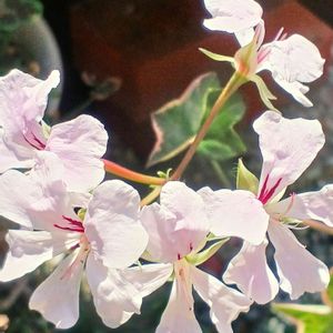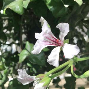 相変わらず斑入りの葉っぱは現れないアイビーゼラニウム。ひらひらとした繊細な薄い花びらが美しいです☺️ お花が長持ちするので、開花が進むとどんどん華やかになって素敵😍嬉しいなぁ