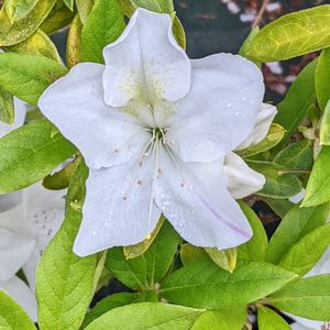 サツキツツジ 白色 綺麗な白色ですね😉 マンションそばの花壇にて。 2022年4月18日撮影☔