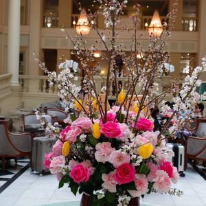 こんにちは。 今日は、1年ぶりのハウステンボスに来ています。 ホテルアムステルダム🏨のロビーに生けられているアレンジメントです。 春らしいお花🌷がたくさんです🎵