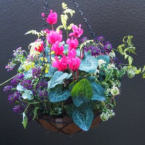 吊り型ハンギングに! ガーデンシクラメンの寄せ植え ベランダの物干しに ちょと飾るだけで 華やかになります♪ #Garden#gardening #flower #ガーデン#ガーデニング#寄せ植え#花の寄せ植え#コンテナガーデン#花と緑のある暮らし #癒やし#ハボタン #メルカリ#リース #humminggarden