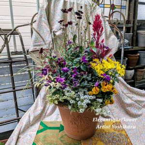 …次回自由ヶ丘花イベントは なんと 駅前ロータリーに決定‼️3/30(日) 花の最高期に皆様に作品を魅せれる事を楽しみにしています🤗🫶💞 さて作品は 花柄の美しい👘を背景に「ノボタン·スプレーマム·フジバカマ 14種ダイナミック花鉢植え」 爽やかな風が吹く草原を創造しました 鉢:ウィッチフォード ーー・ーー ♦️ いくら簡単に作れます動画見て それなりにデザインできても… 結局「育てる」できなきゃ、続かないんだよね…😮💨 と、お嘆きの貴女に朗報…💆 私が紆余曲折しやっと辿り着いた「育てる術」を 教える, 提供する 倶楽部を作ろうと考えています💞 ①まず「土」 花が根を張り育つ「土の構成」を整えること。栄養が最高に効く土台創り ②「栄養」 株が育ち花を咲かせるための「栄養」を供給すること ③日々の適切な管理 …「育てる」ができるようになると 本当の意味で花を楽しめる ようになるよ。ここまで違うのかという実感、こんなに花をイキイキと大きく咲かせることができるのか、バランスよく育てることできるのか って…😯 ♦️ 最近はツルバラの誘引してま〜す ♦️ フォローして見逃さないようにね💞 GSユーザーから花鉢植え作家になった伝説のアーティスト‼️皆様の応援こそ頑張りの源。応援してね〜🤗🫶💞 ♦️次回自由ヶ丘花イベント 3月に 花の最高期に爆咲きした、4ヶ月育てた💐寄植えを魅せれる事を楽しみにしています‼️来てね〜🤗🫶💞 ❁ ❁ ~ 心を上質にするエレガントでアンティークな花 ~ 根のある生きる花を自在に奏でるアーティスト Elegantique Flower ⚜️ 💐Artist Yoshikazu . ーー・ーー 💠花鉢植え作家の発想㊙️特別公開💠 「寄植えのデザインが上達するコツ」 ①㊙️売場入口から全体を指を指しながら見渡す👀 おおよそ全ての花を把握 (最重要‼️) ②この時に 引っかかる(惹かれる)花があれば頭の隅にいれておく ③引っかかった花を見に行き、そこから全体をくまなく見る 例「スプレーマム。花多く大きくて華やかね。使えないかな」 ④頭の隅にスプレーマムをいれておき、全体を再度くまなく歩いて見る。すると 「あっ ノボタン。大きくて花芽も多いな。うん!?さっきのスプレーマムと合うんじゃないかな」「あれ!?規格外の大チョコレートコスモスが…」「よしよし、ウィッチフォードの大美鉢に植えよう」 と… 後の構成は雪崩式に浮かんでくる ※🈲最初から ビオラに行っては駄目🙅 それしか見えなくなる…