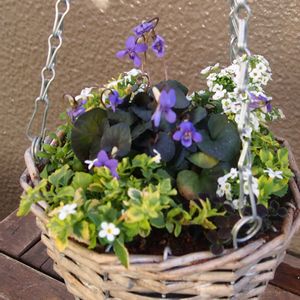 小さなハンギングバスケットに! ビオラ.ラブラドリカ 黒い葉とムラサキの 小さな花が可愛いラブラドリカ 斑入りのバコパ.バリエガータ 黒いクローバーやアリッサム 小さくまとめてみました #Garden#gardening #flower #ガーデン#ガーデニング#寄せ植え#花の寄せ植え#コンテナガーデン#花と緑のある暮らし #癒やし#メルカリ#鉢花#フラワー#ボタニカル#ナチュラル#ハンギング #HummingGarden