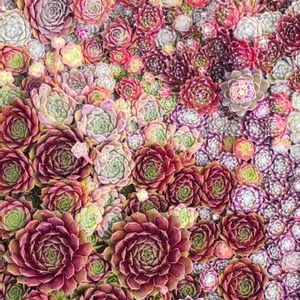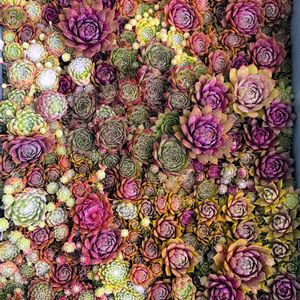 綺羅びやかなお嬢様 センペルビウム・クスビッタツムさん😻💗💜💚🤍💛 ガレージも端の方は☔が吹き込みます👀💧 そろそろ蒸れを意識して内側に移動かな?…と思うと 涼しくなり…😸💧 ここ数年 気候が変わってしまい 判断が難しい…👀💧💧
