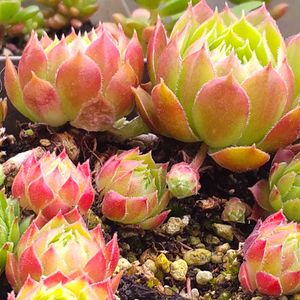 棚の上でしっかりお☀様を浴びてた センペルビウム・ダークポイントさん😻❤️💜💚 子株ちゃんの紅色が鮮やかです😸❤️✨