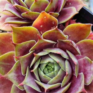 ☔️の中で一際輝いていた センペルビウム・リップスティックさん😻💕 水滴が綺羅綺羅✨❇️✨ 宝石💎魅たいですね😺