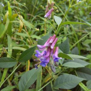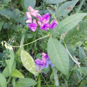 おはようございます🤗 この花が綺麗でした。 畑の畦道に咲いていました。 ヤハズノエンドウ、クサフジ🌀? 違うような...と。(୨୧•͈ᴗ•͈)◞ᵗʱᵃᵑᵏઽ*♡💐 ☘が混み合っていて、分かりにくいです。 ツルフジバカマかナンテンハギではと、コメントいただきました。 ありがとうございます💐🙇♀ 検索🔎してみます。 ⑅(゜ー゜*)