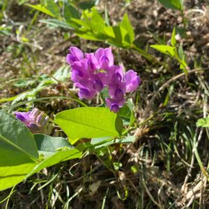 💜💗ナンテンハギ💜💗🌿 サボンソウの近くでクサフジに似た花💜💗🌿 小葉が2つで幅広く先が尖っているのでナンテンハギですね 💗💜🌿マメ科の多年草