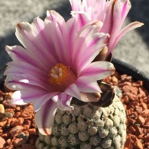 去年より花数増えた。(*´ー`*) . . ちなみに去年は一輪でした💦 . Turbinicarpus valdezianus . ツルビニカルプス バラ丸