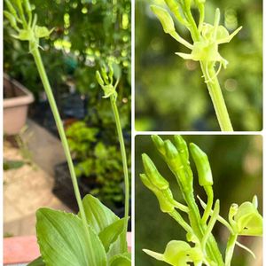 先日山梨の道の駅なるさわ園芸コーナーで購入しました☺️ 蕾での購入だったので、どんな花が咲くのかも知らず楽しみにしていました☺️ 花が咲きました🎶 クモキリソウは蘭科のクモキリソウ属だそうです😄 知らなかった〜❗️ 白いお花が咲くのかなー?と思っていたのですが、こんな形の花にビックリ🫢‼️ 調べたら🔍 蘭だったんだ〜❣️