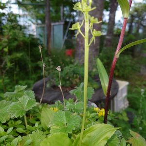 散歩中の山の中で 初めましてのお花 花だと気付くまでに時間がかかりました(๑°ㅁ°๑)ハッ‼︎ 不思議な造形です