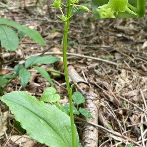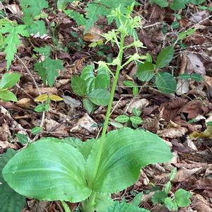 関山にて。 もうひとつ🙏花後なんですが・・・ 葉っぱ10センチくらいです。 クモキリソウのようです❣️ 1つくらいお花が見たかったなぁ😊