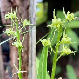 梅雨☔☔🐌散歩 初めて見た花💠 緑色の小花が可愛い クモキリソウと教えて頂きました。
