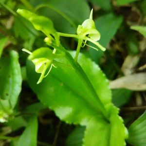 6/6に咲いていた花 クモキリソウ(ラン科) ジガバチソウに似ていますが、ジガバチソウは葉っぱに網目状の模様があります☺️ 愛媛・赤星山にて